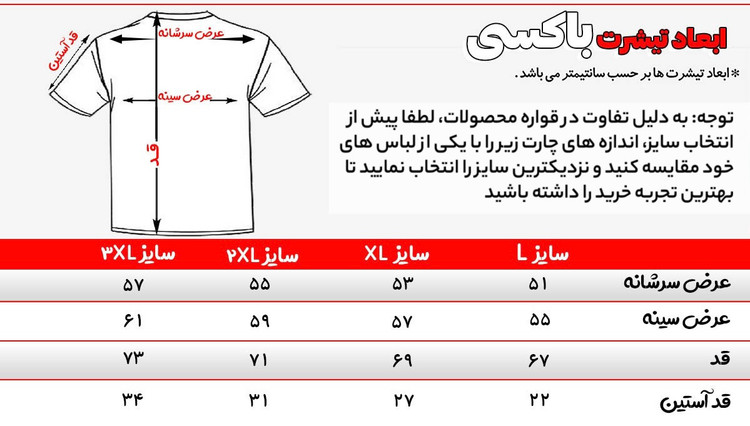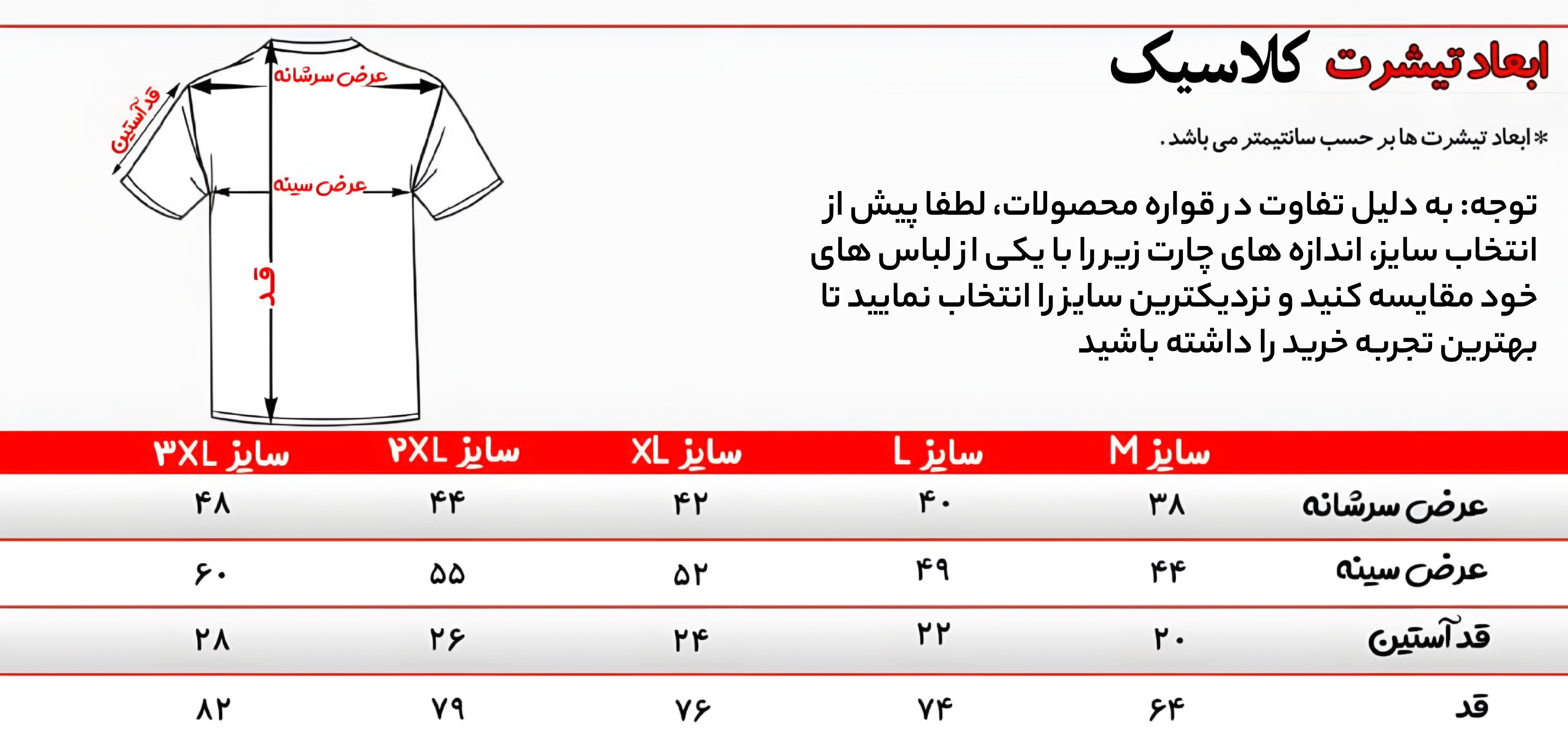 جنس تیشرت: کلاسیک: صددرصد نخ پنبه و باکسی: پنبه صددرصد