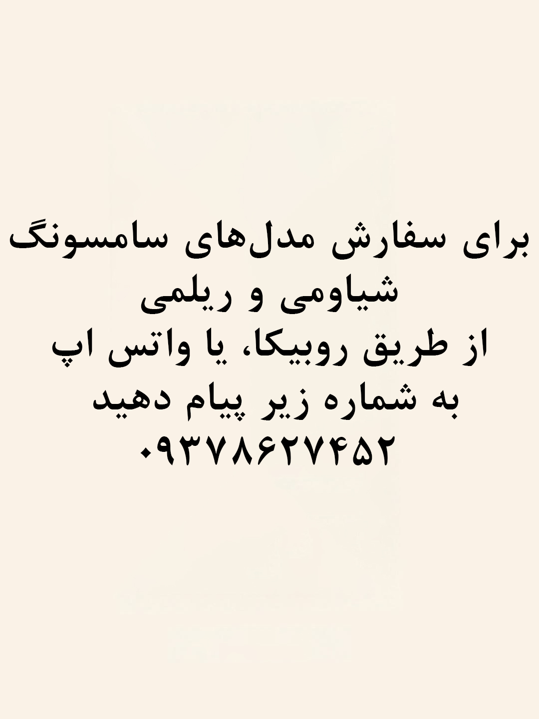 "برای سفارش این طرح برای مدلای سامسونگ، شیاومی و ریلمی در روبیکا یا واتس اپ به شماره زیر پیام دهید:"